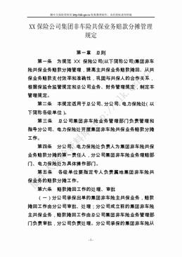第一章 总则 第一条 为规范XX保险公司(以下简称公司)集团非车险共保业务赔款分摊管理,提高主共保业务赔款摊回、从共保业务赔款支付效率和准确性,巩固与共保人的合作关系,根据保监会监管规定和总公司业务、财务管理规定,制定本管理规定。 第二条 本规定适用于总公司、分公司、电力保险处(以下简称各级...